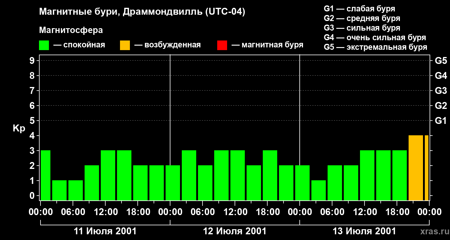 Магнитные бури в Драммондвилле 13 июля 2001 года