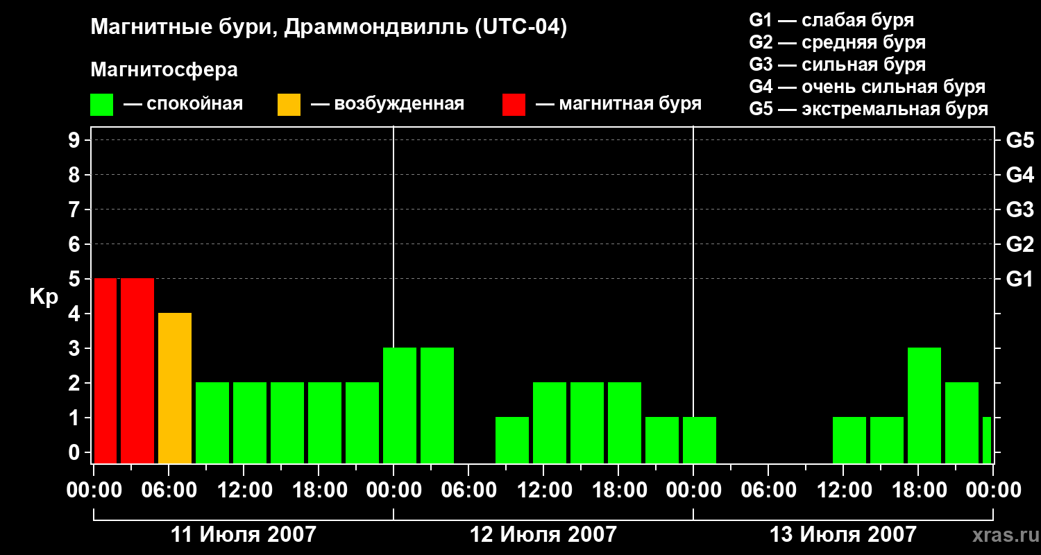 Магнитные бури в Драммондвилле 13 июля 2007 года