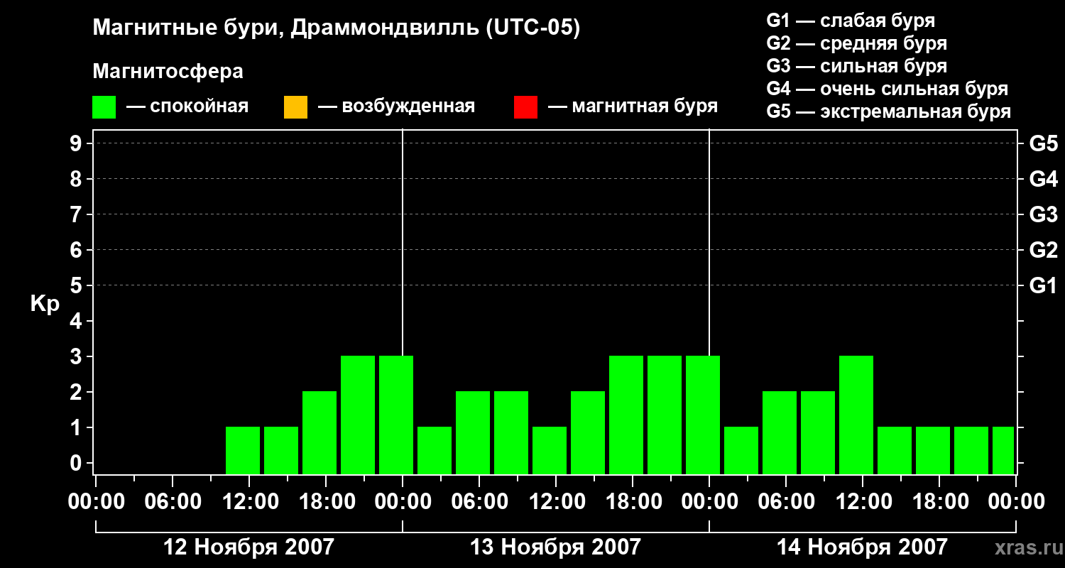 Магнитные бури в Драммондвилле 14 ноября 2007 года