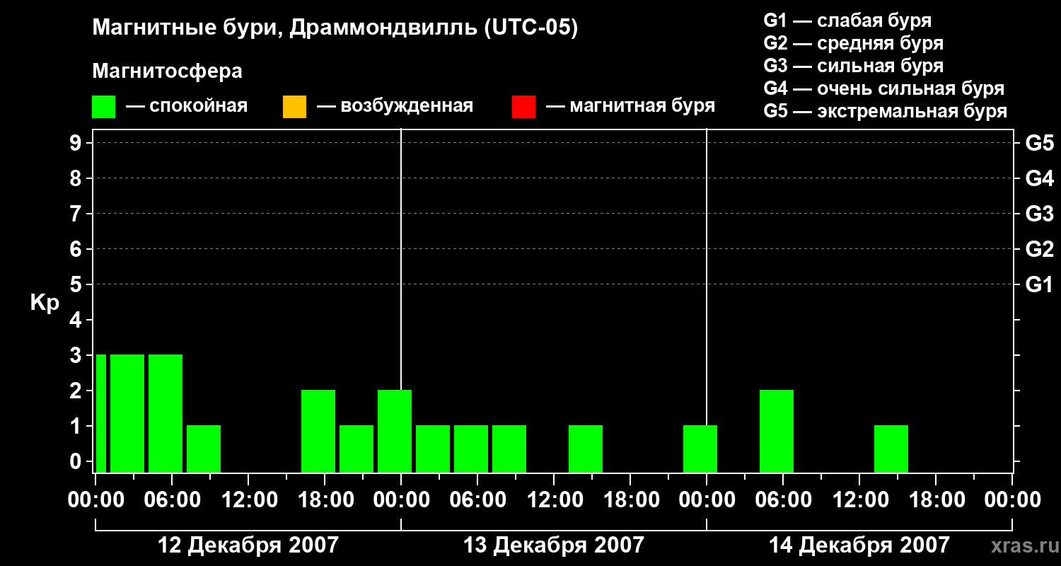 Магнитные бури в Драммондвилле 14 декабря 2007 года