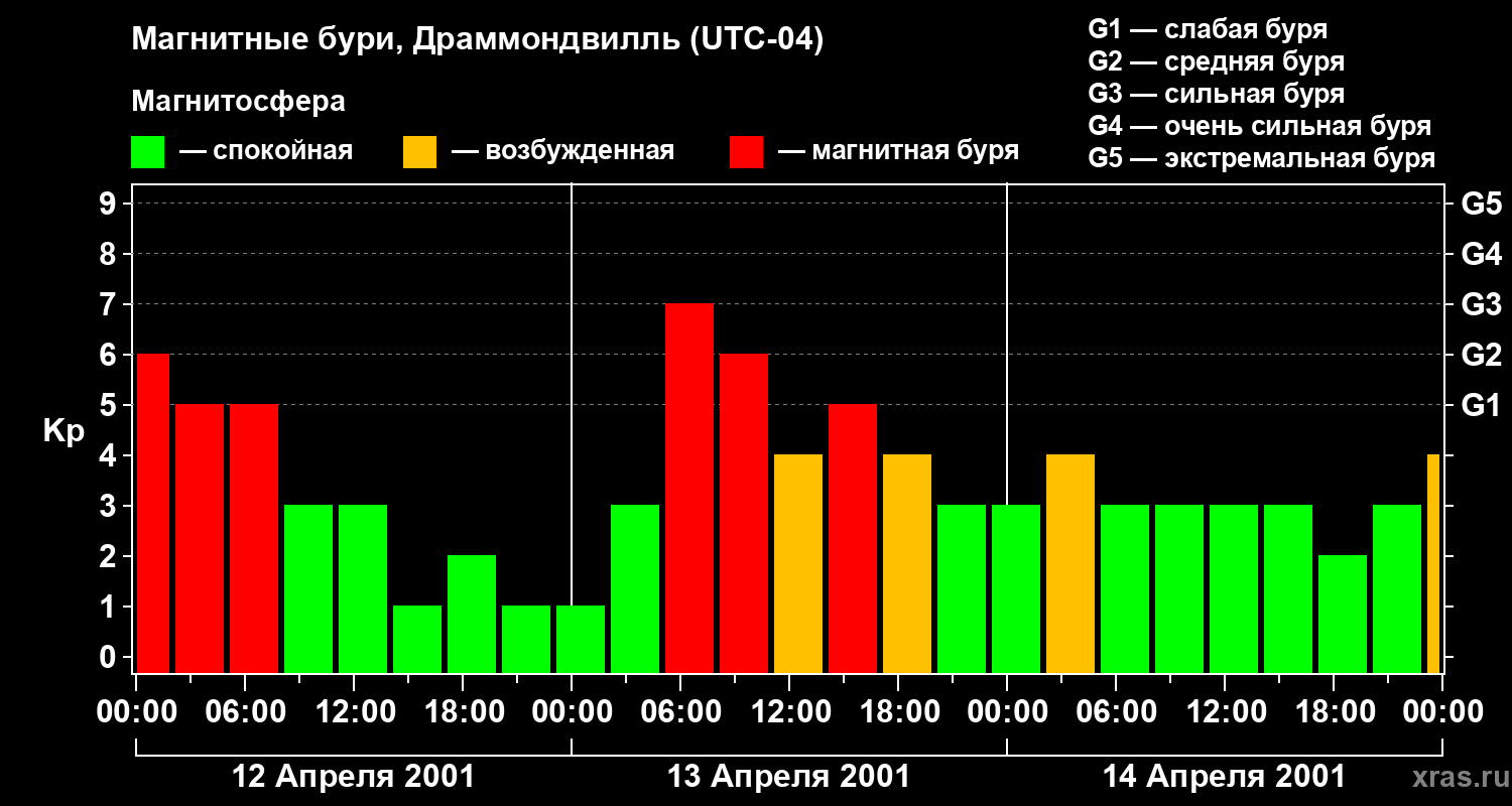 Магнитные бури в Драммондвилле 14 апреля 2001 года