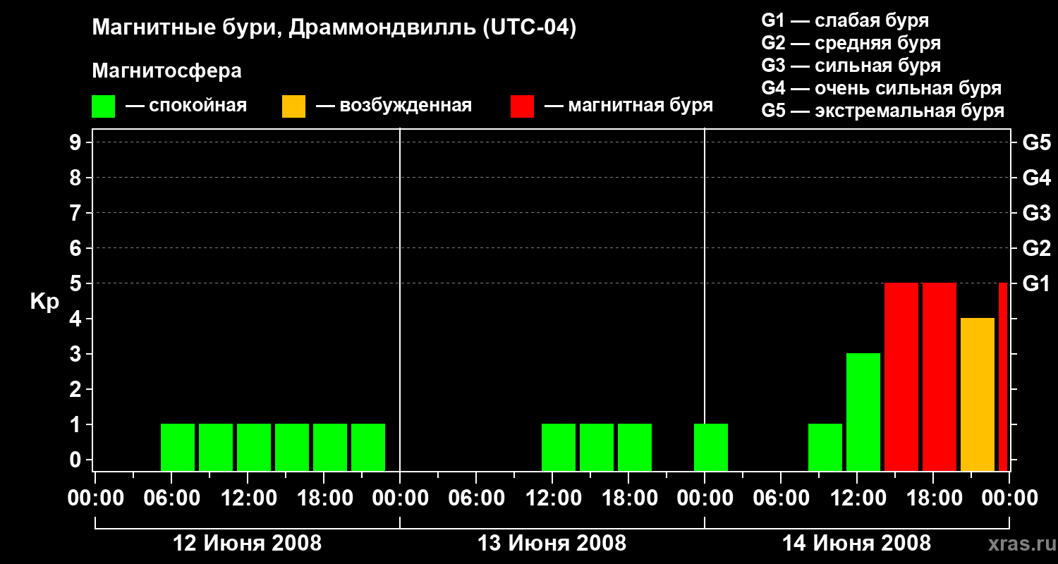 Магнитные бури в Драммондвилле 14 июня 2008 года