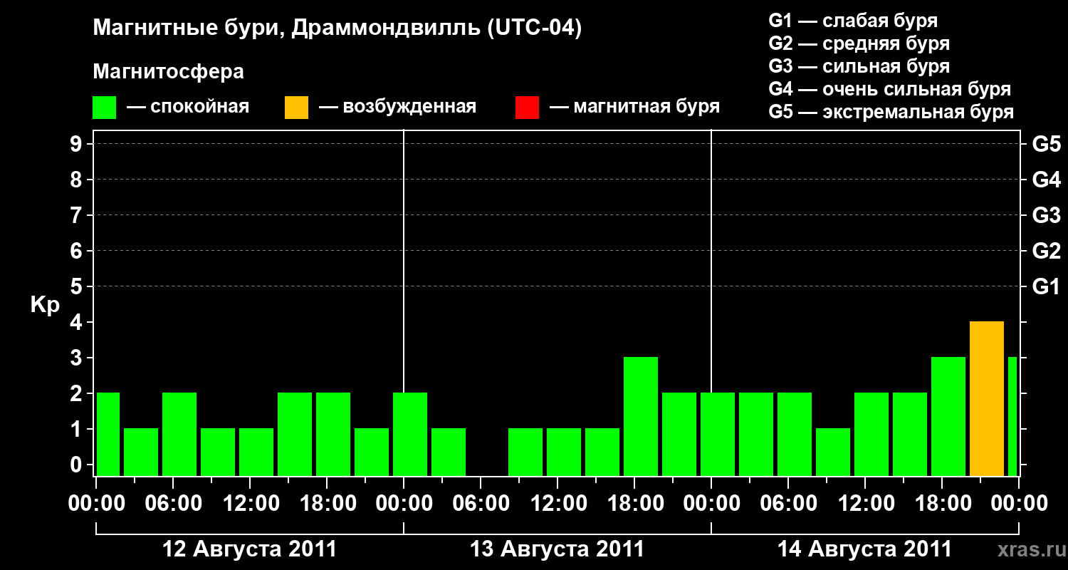 Магнитные бури в Драммондвилле 14 августа 2011 года
