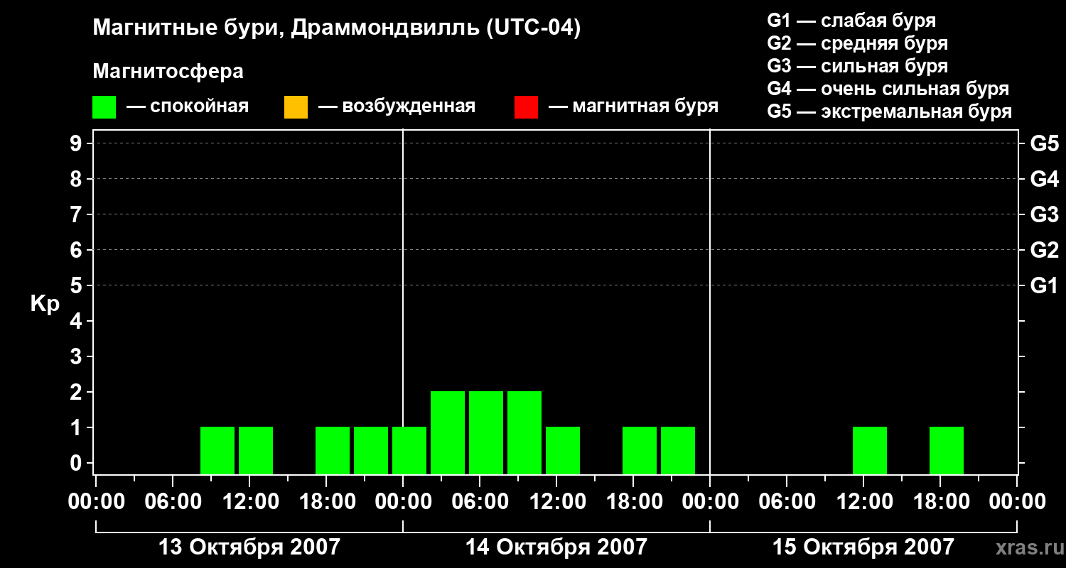 Магнитные бури в Драммондвилле 15 октября 2007 года