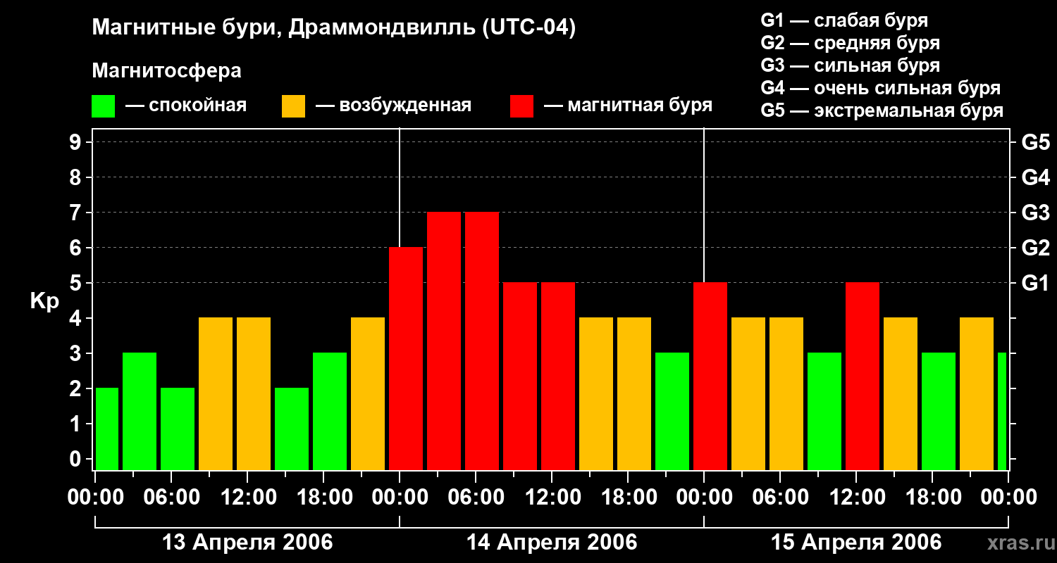 Магнитные бури в Драммондвилле 15 апреля 2006 года