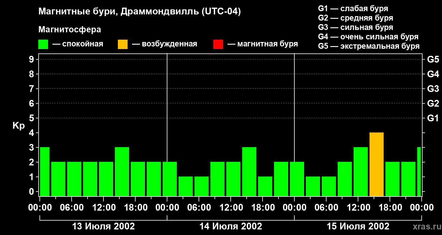 Магнитные бури в Драммондвилле 15 июля 2002 года