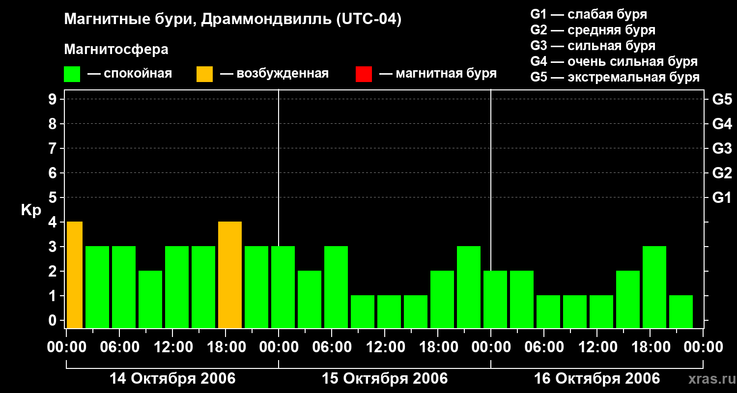 Магнитные бури в Драммондвилле 16 октября 2006 года