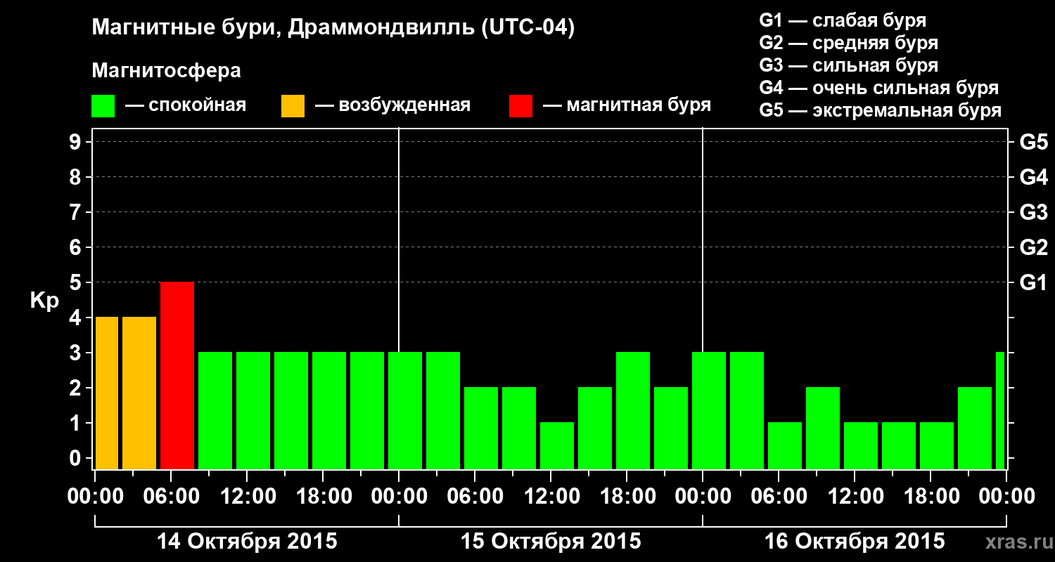 Магнитные бури в Драммондвилле 16 октября 2015 года