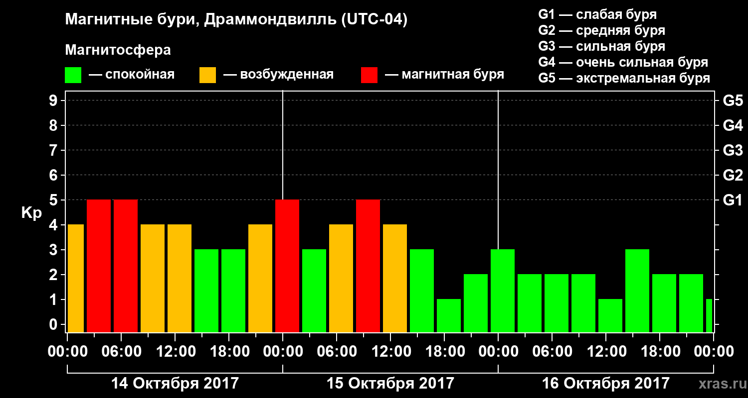 Магнитные бури в Драммондвилле 16 октября 2017 года