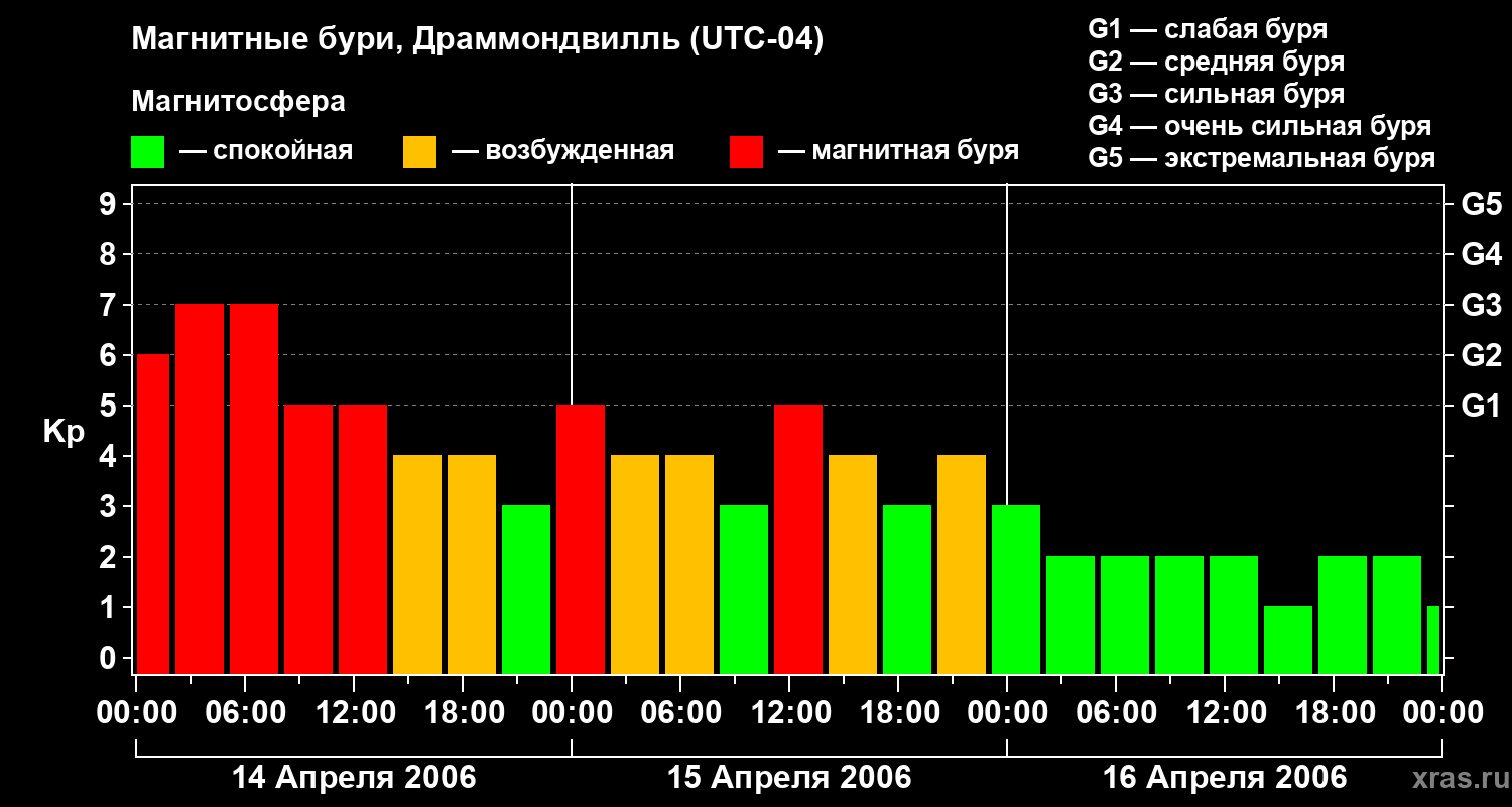 Магнитные бури в Драммондвилле 16 апреля 2006 года