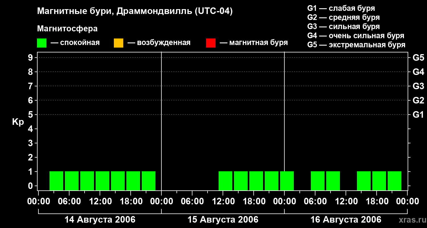 Магнитные бури в Драммондвилле 16 августа 2006 года