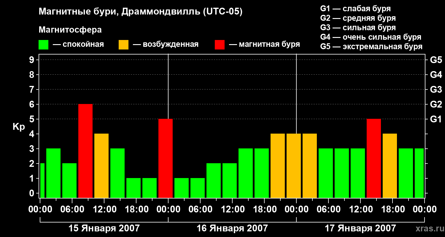 Магнитные бури в Драммондвилле 17 января 2007 года