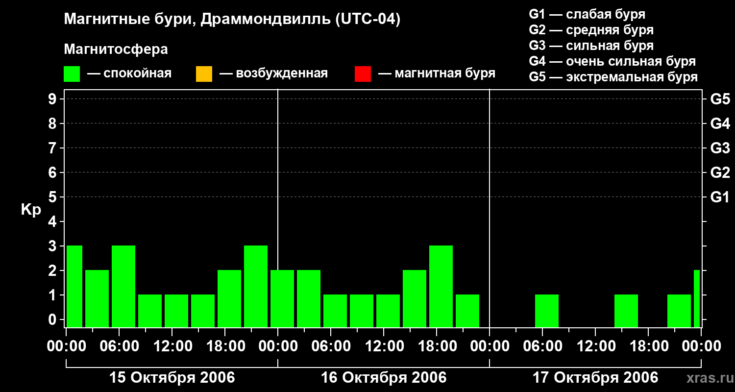 Магнитные бури в Драммондвилле 17 октября 2006 года