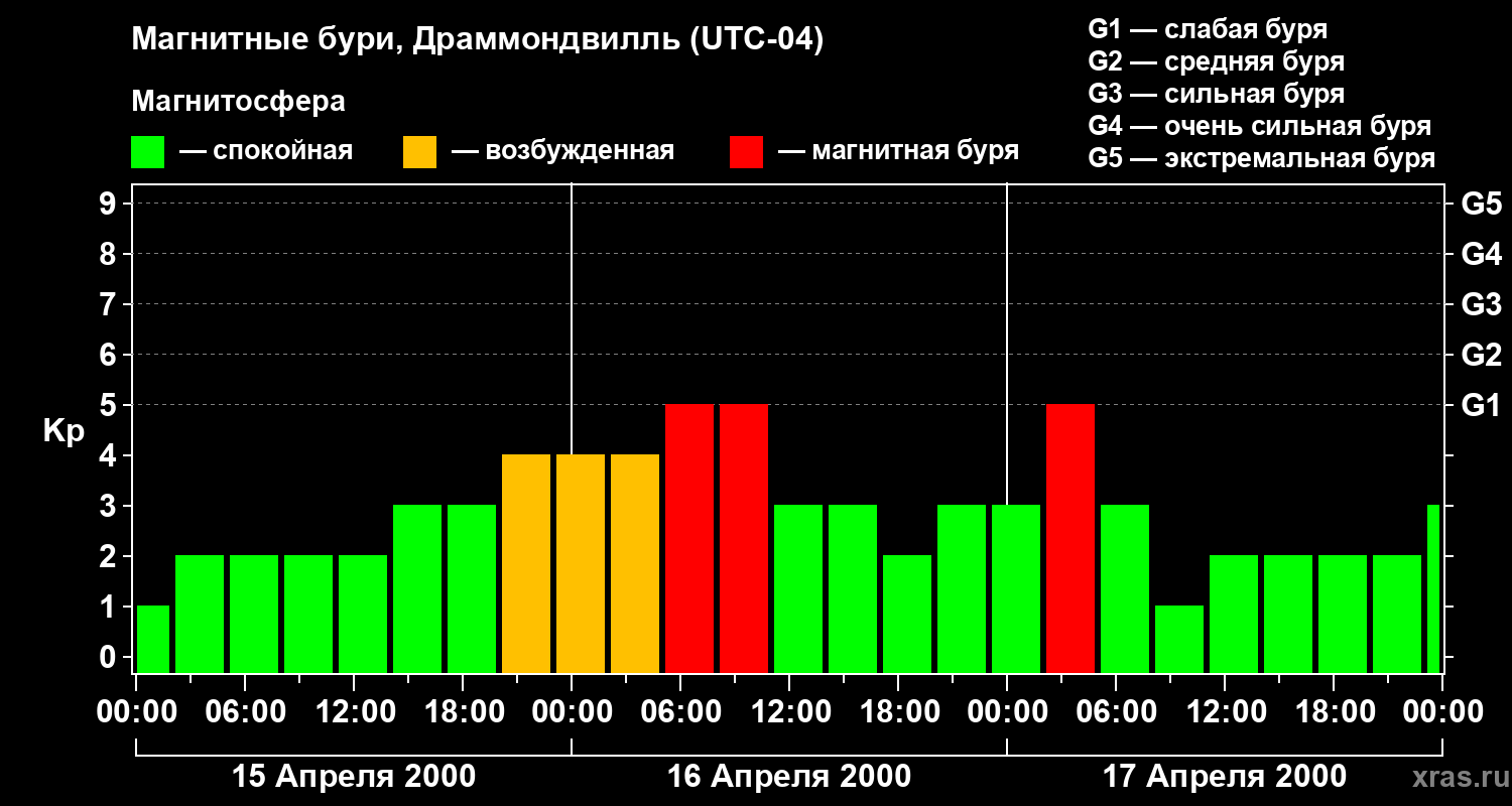 Магнитные бури в Драммондвилле 17 апреля 2000 года