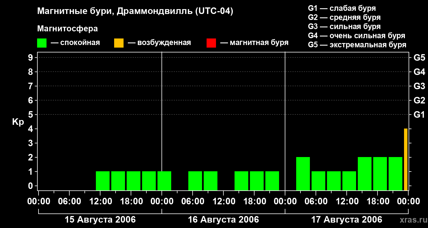 Магнитные бури в Драммондвилле 17 августа 2006 года