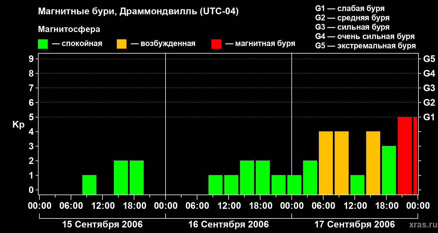 Магнитные бури в Драммондвилле 17 сентября 2006 года