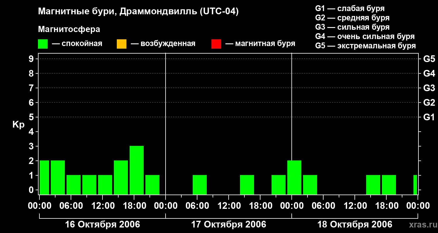 Магнитные бури в Драммондвилле 18 октября 2006 года