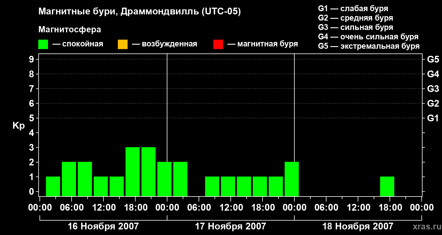 Магнитные бури в Драммондвилле 18 ноября 2007 года