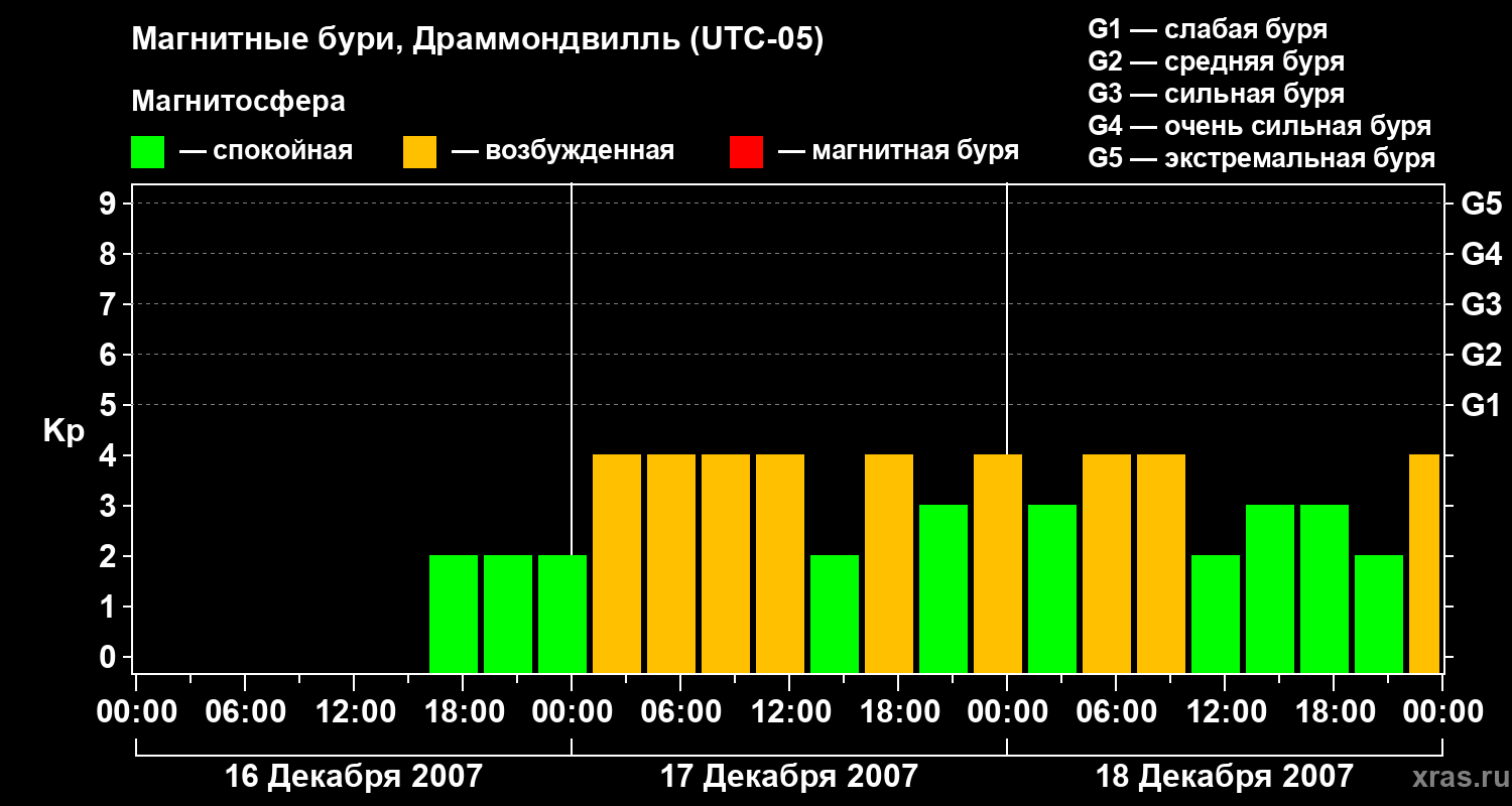 Магнитные бури в Драммондвилле в декабре 2007 года