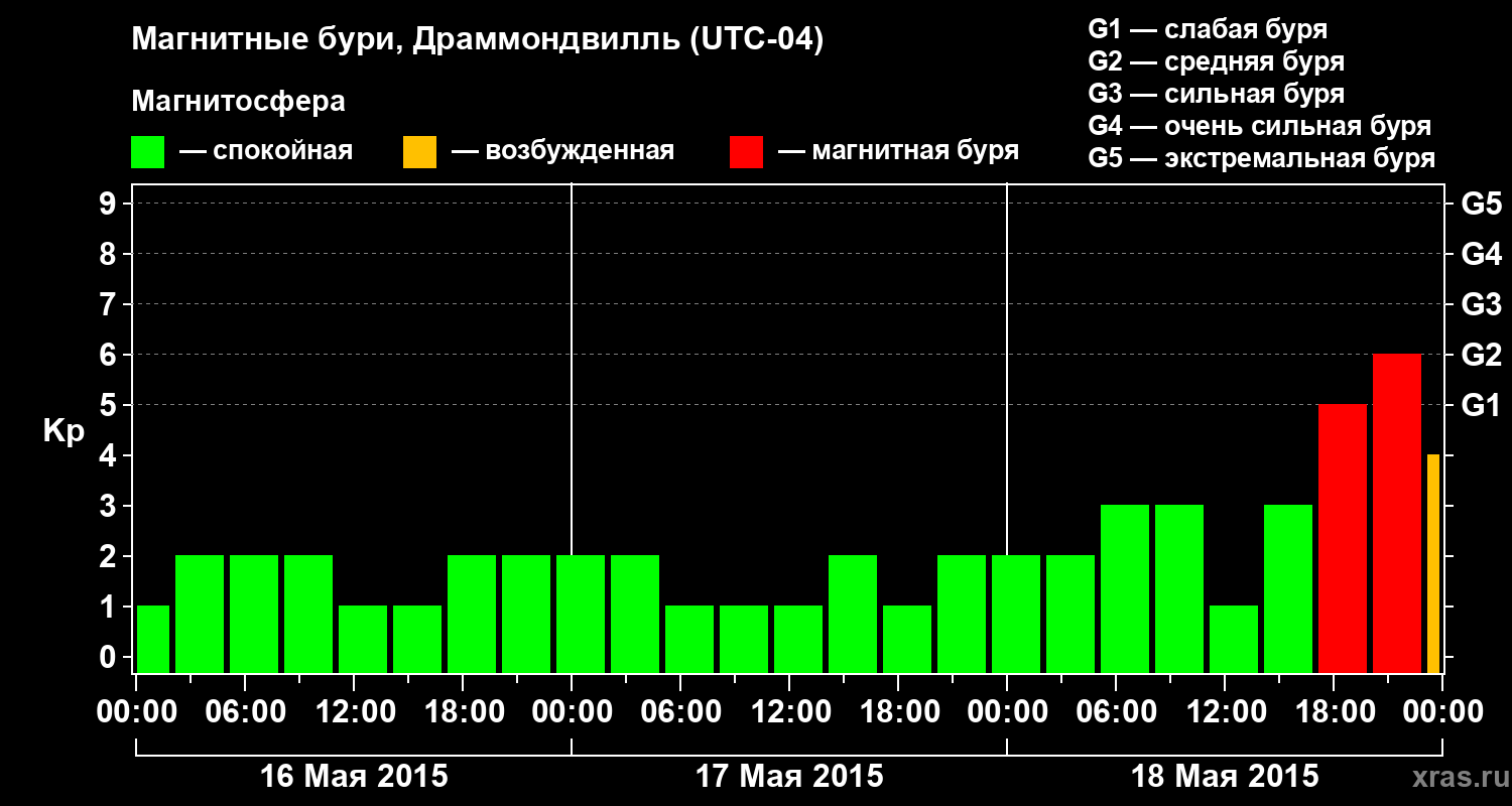 Магнитные бури в Драммондвилле 18 мая 2015 года