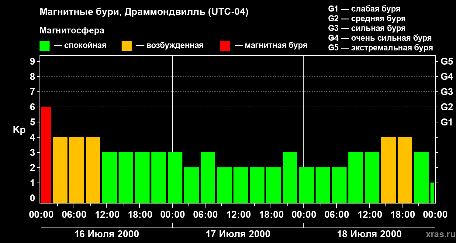 Магнитные бури в Драммондвилле 18 июля 2000 года