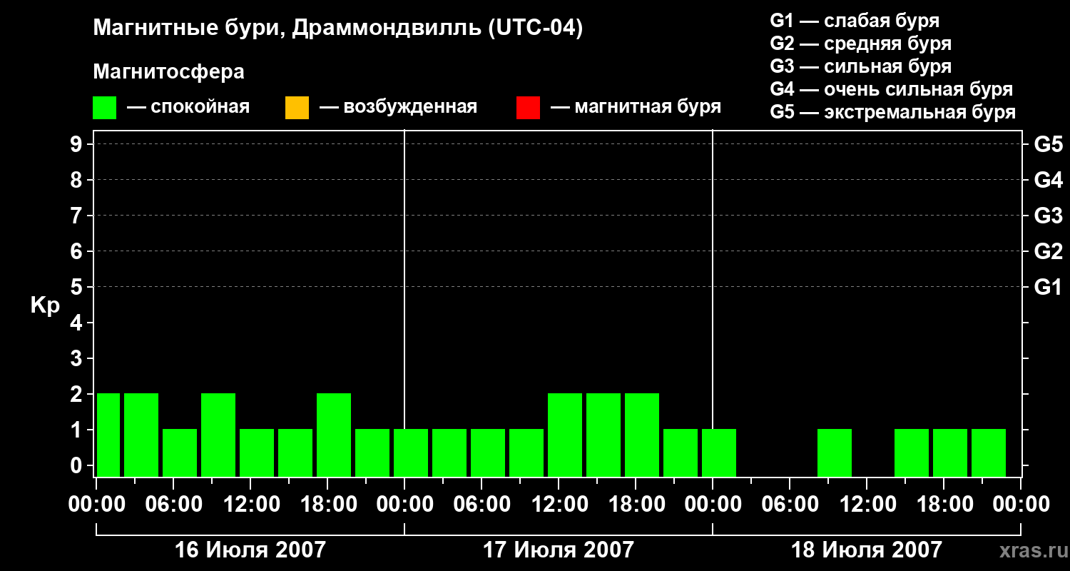 Магнитные бури в Драммондвилле 18 июля 2007 года