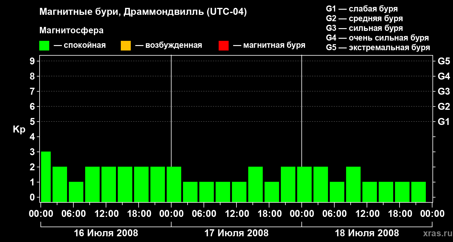 Магнитные бури в Драммондвилле 18 июля 2008 года