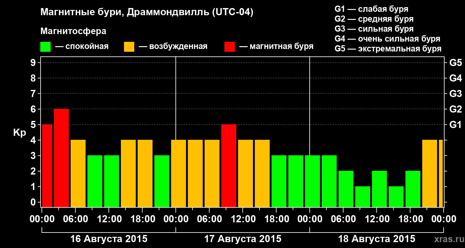 Магнитные бури в Драммондвилле 18 августа 2015 года