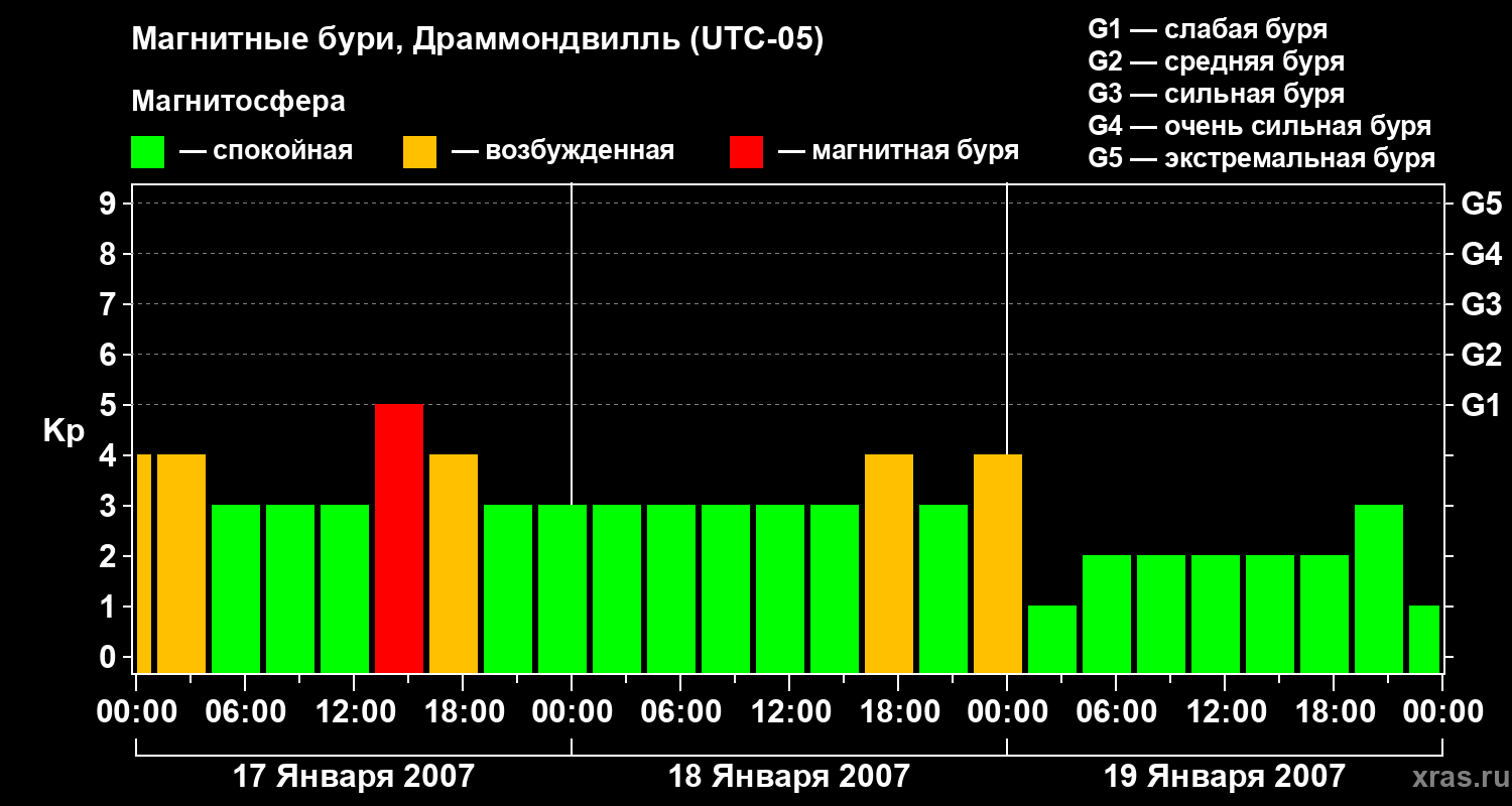 Магнитные бури в Драммондвилле 19 января 2007 года