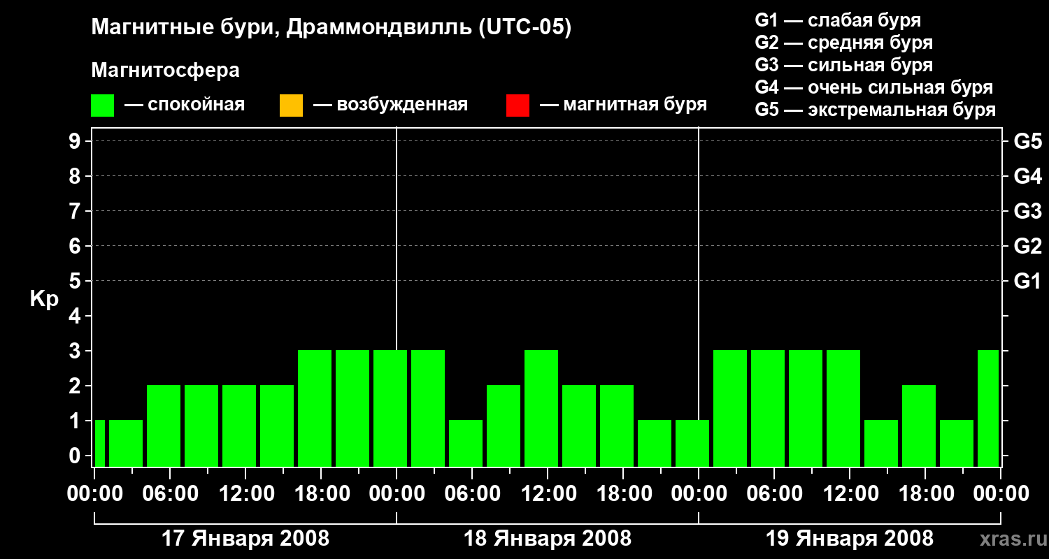 Магнитные бури в Драммондвилле 19 января 2008 года