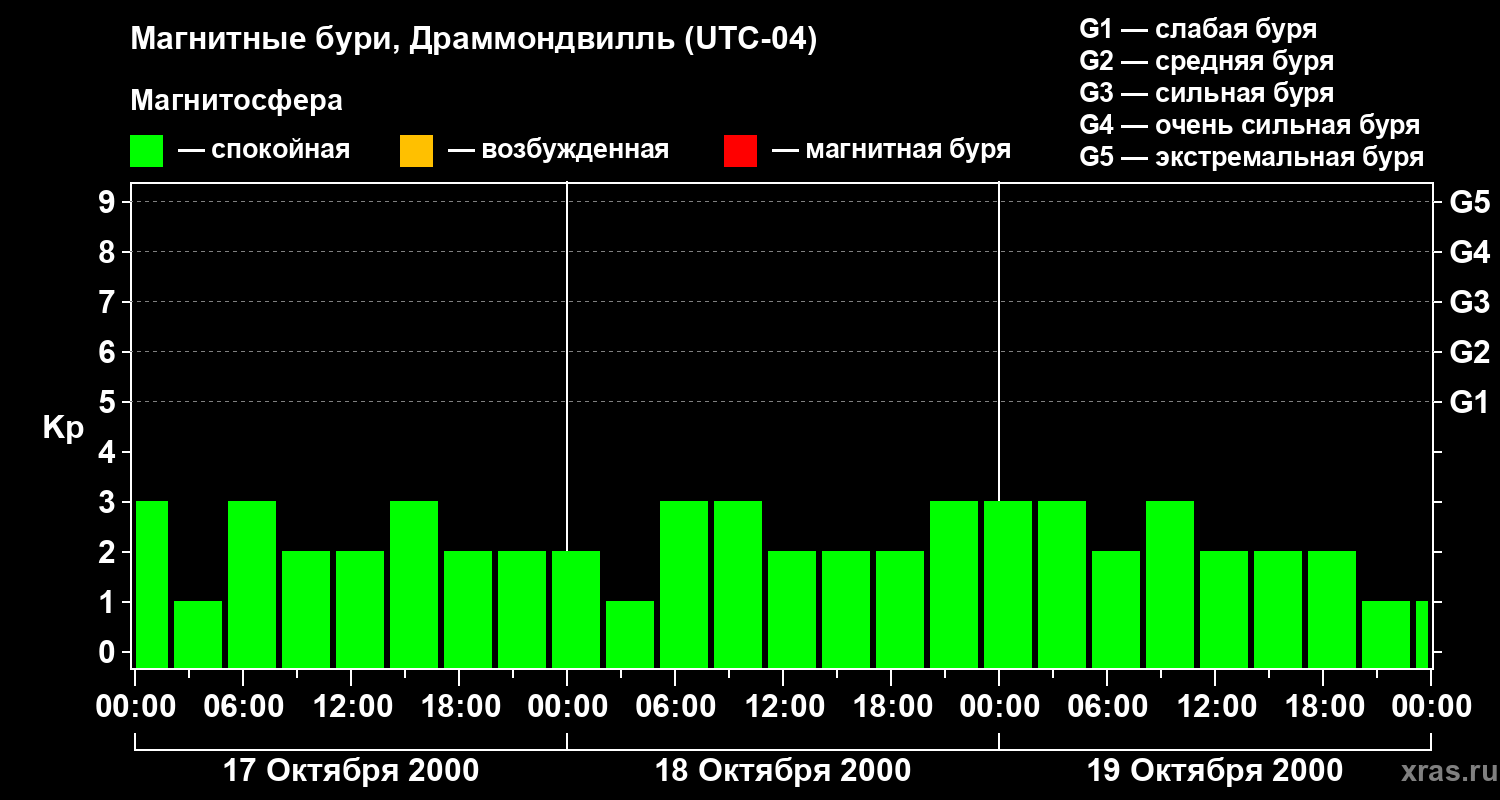 Магнитные бури в Драммондвилле 19 октября 2000 года