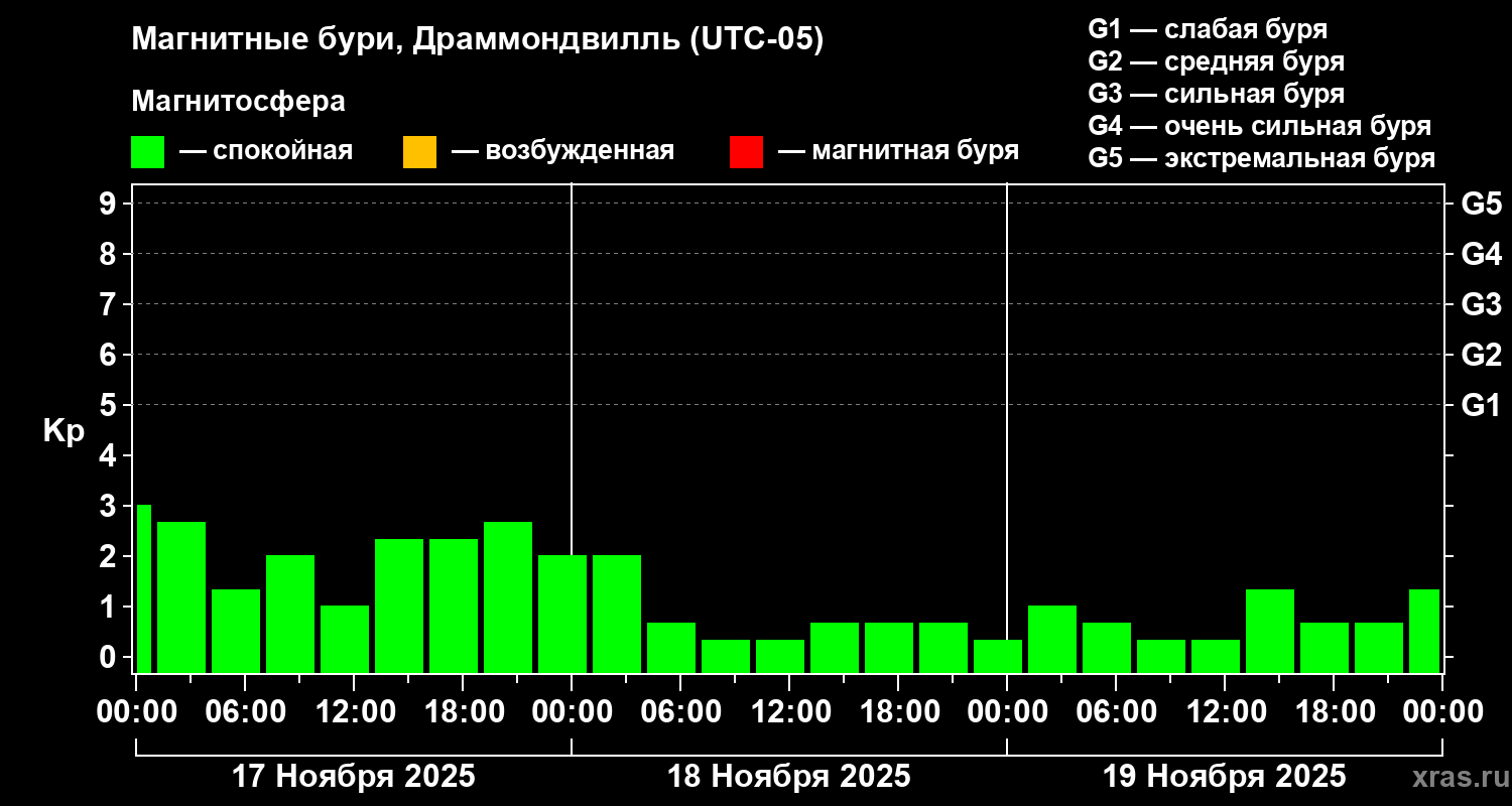 Магнитные бури в Драммондвилле 19 ноября 2025 года