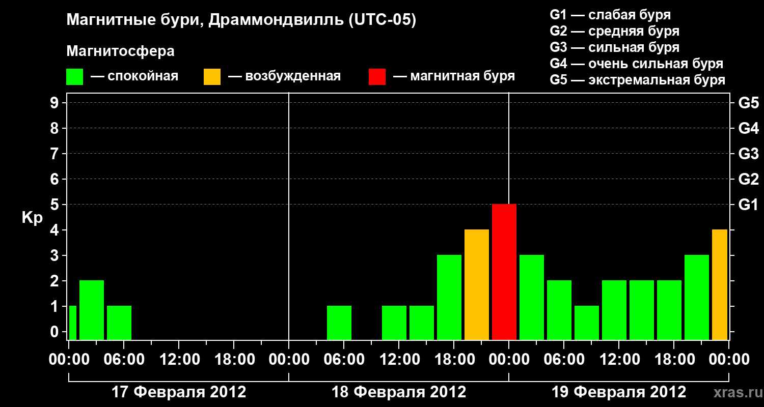 Магнитные бури в Драммондвилле 19 февраля 2012 года