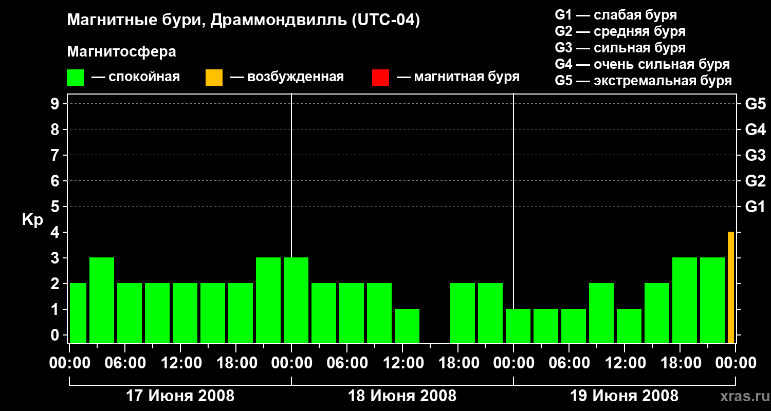 Магнитные бури в Драммондвилле 19 июня 2008 года