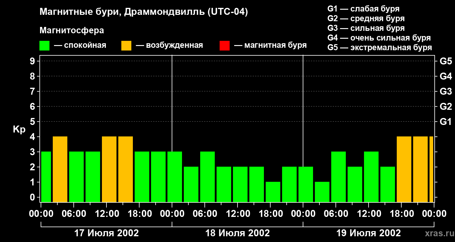 Магнитные бури в Драммондвилле 19 июля 2002 года