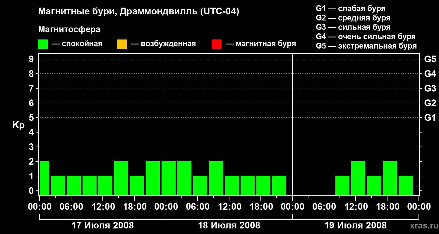 Магнитные бури в Драммондвилле 19 июля 2008 года