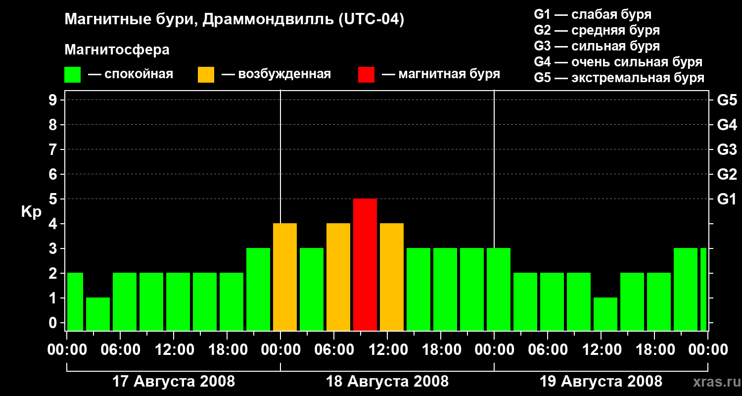 Магнитные бури в Драммондвилле 19 августа 2008 года