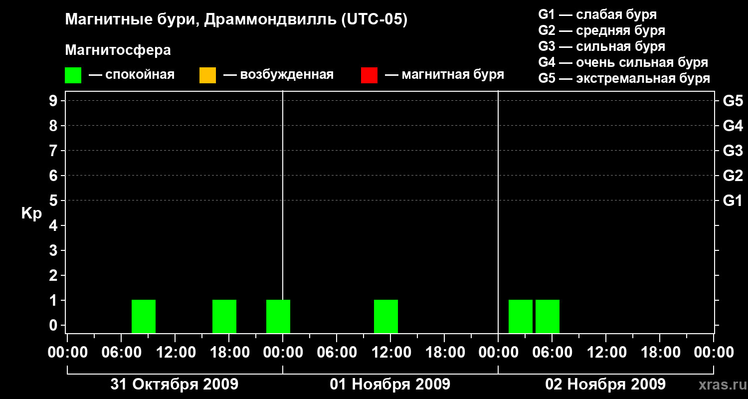 Магнитные бури в Драммондвилле 2 ноября 2009 года