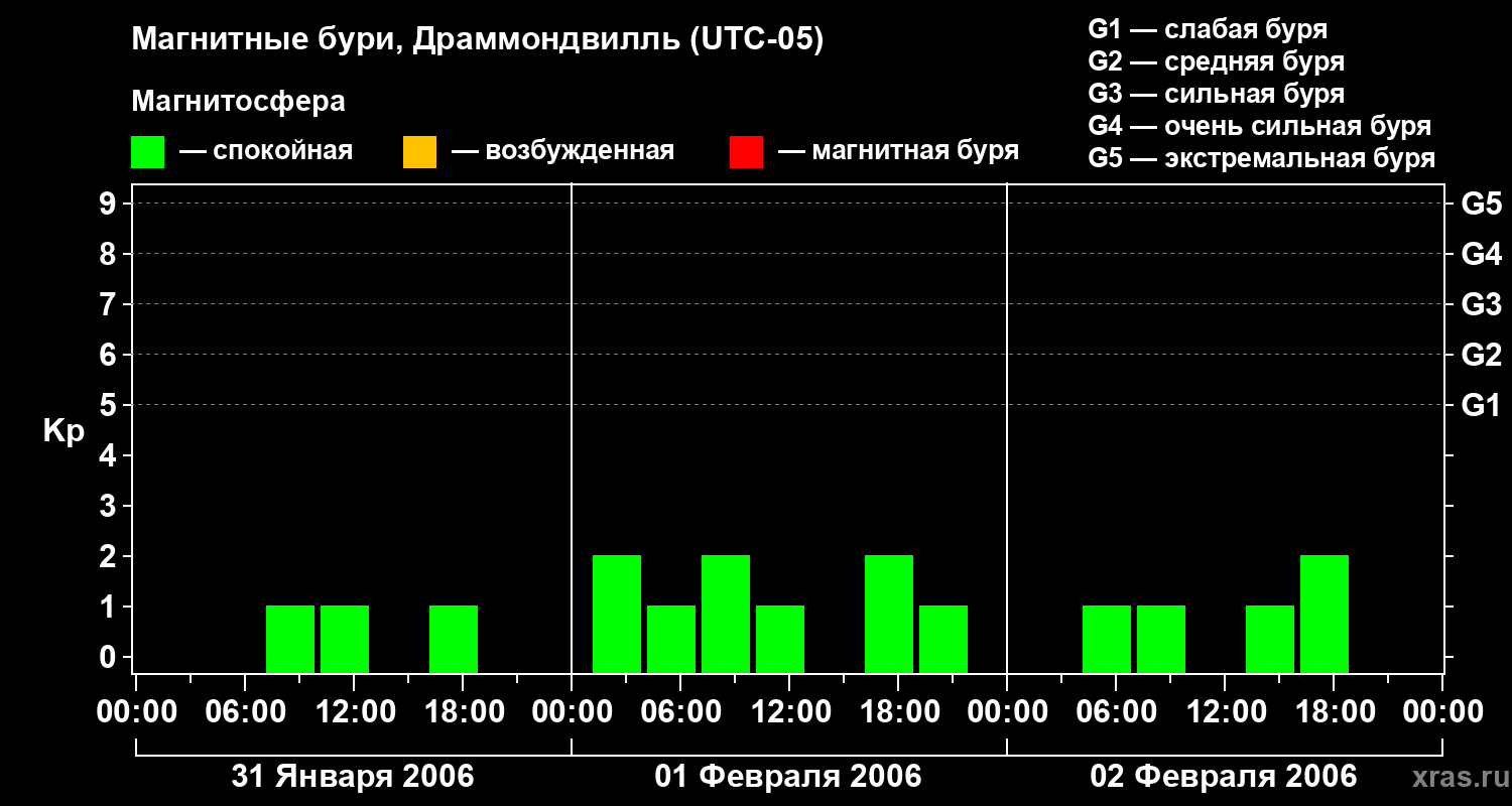 Магнитные бури в Драммондвилле 2 февраля 2006 года