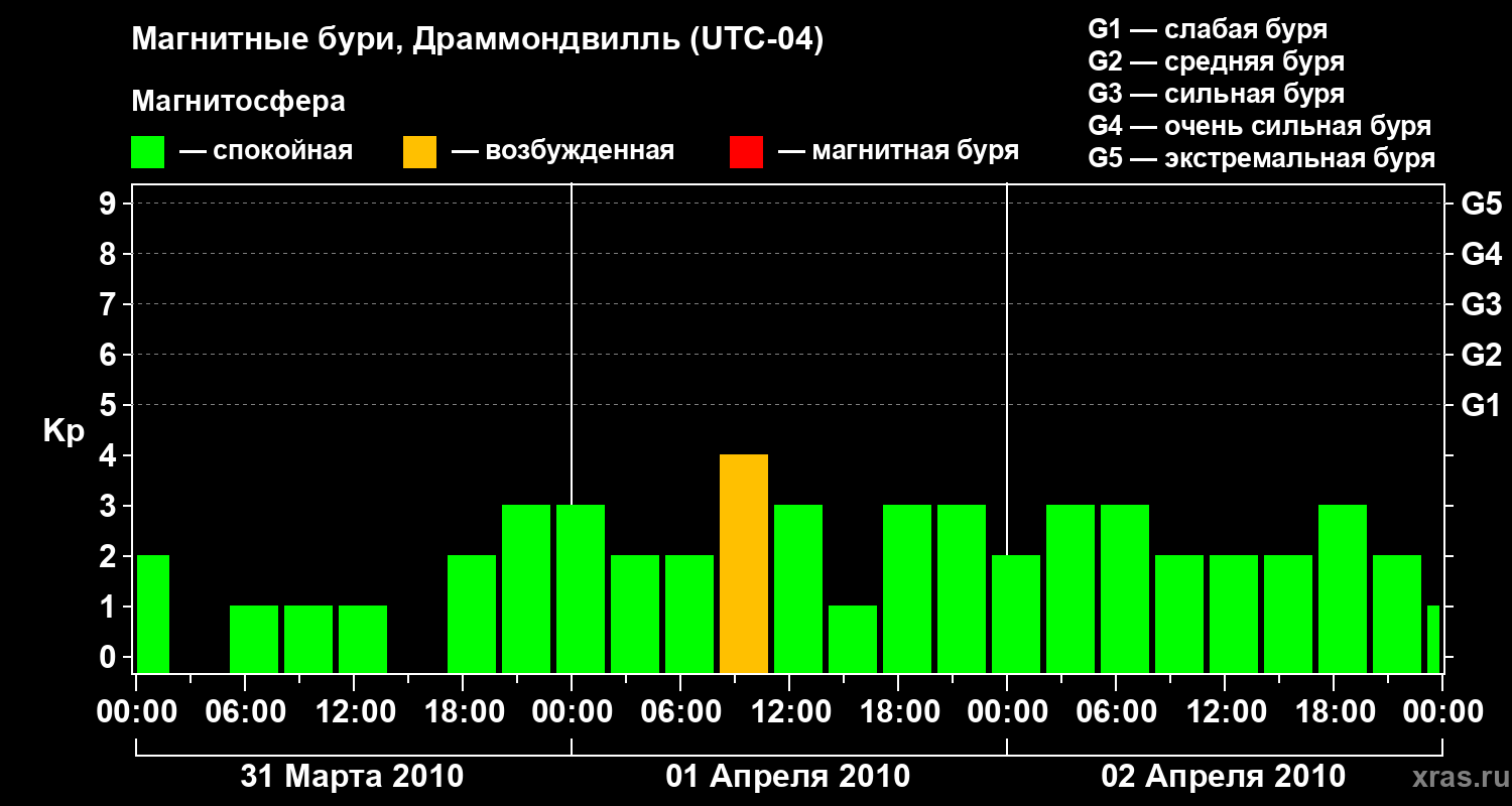 Магнитные бури в Драммондвилле — 2 апреля 2010 года