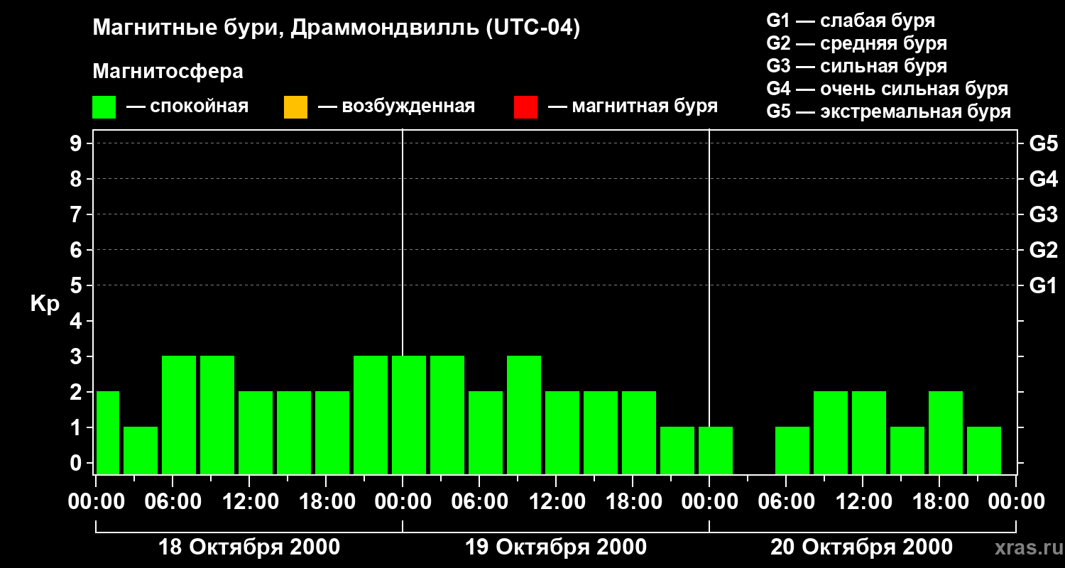 Магнитные бури в Драммондвилле 20 октября 2000 года