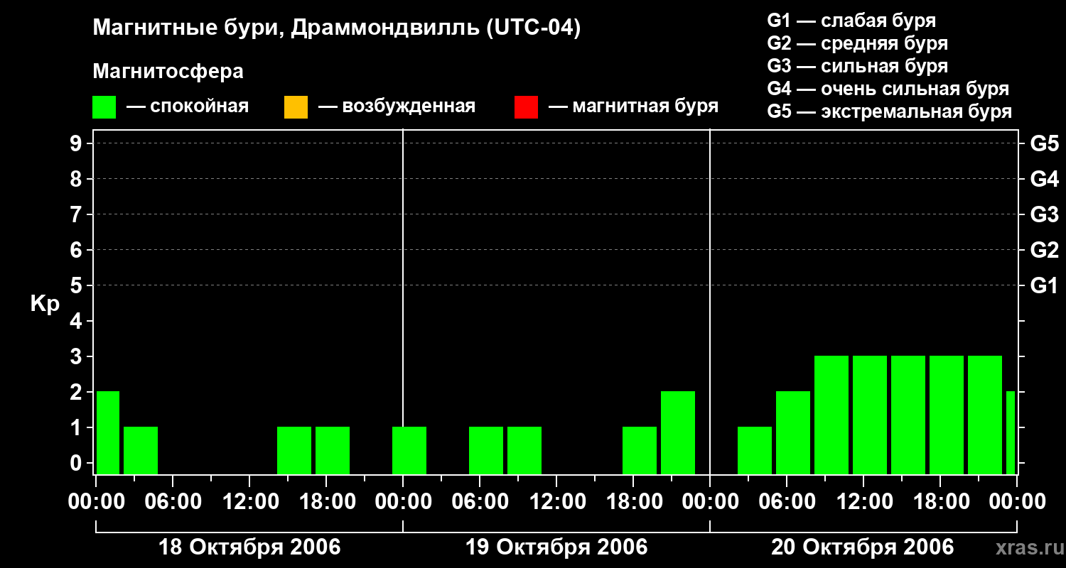 Магнитные бури в Драммондвилле 20 октября 2006 года