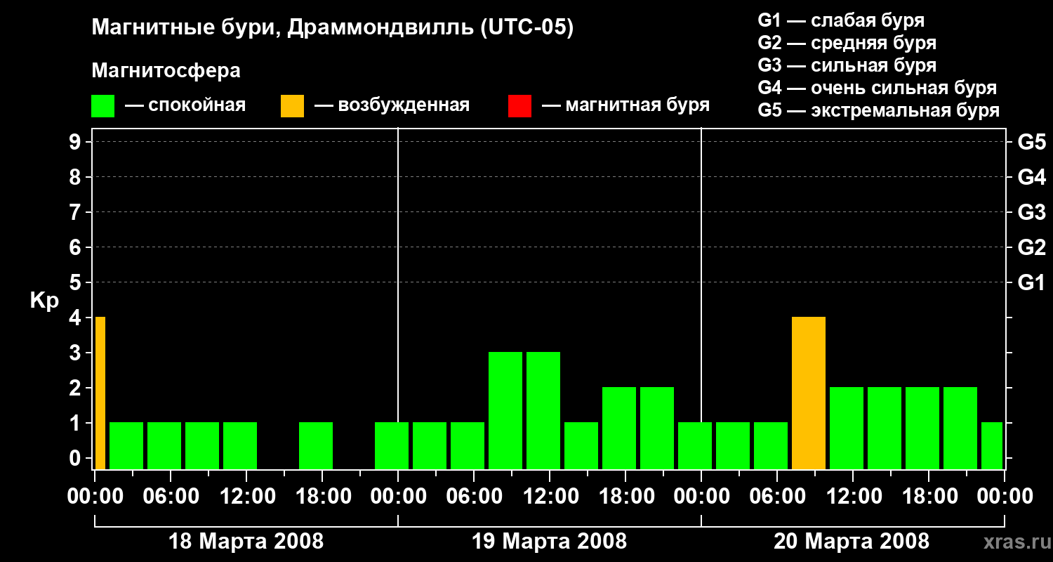Магнитные бури в Драммондвилле — 20 марта 2008 года