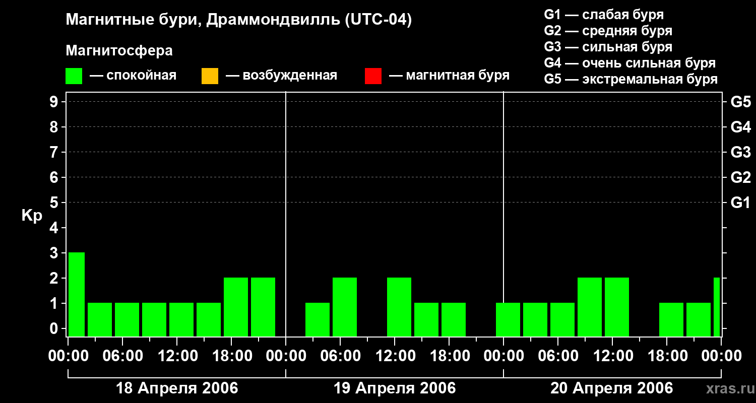 Магнитные бури в Драммондвилле 20 апреля 2006 года