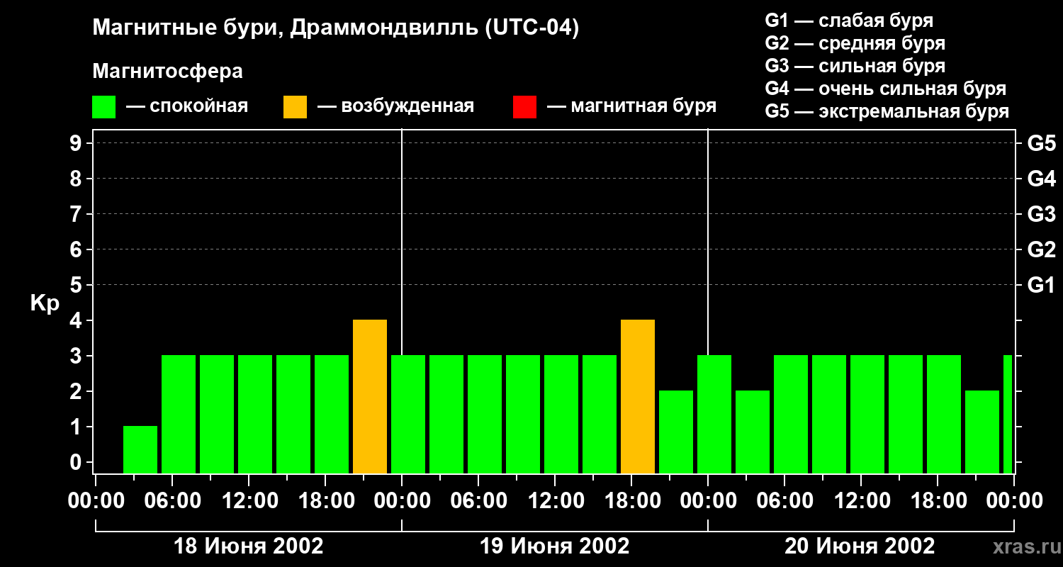 Магнитные бури в Драммондвилле 20 июня 2002 года