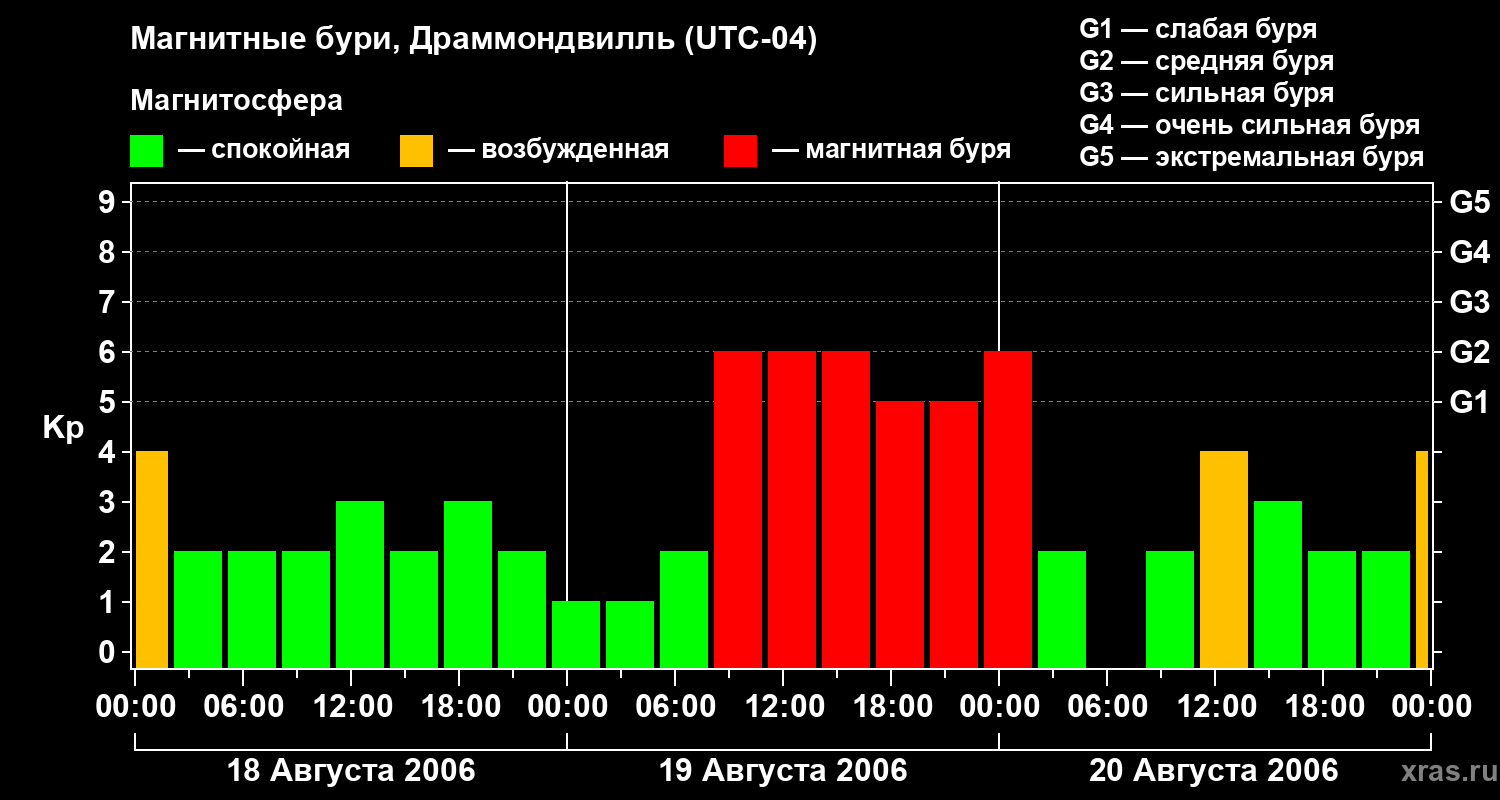 Магнитные бури в Драммондвилле 20 августа 2006 года