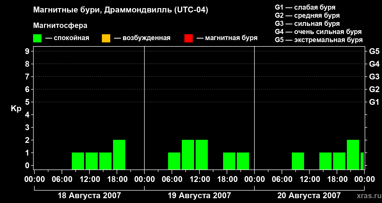 Магнитные бури в Драммондвилле 20 августа 2007 года