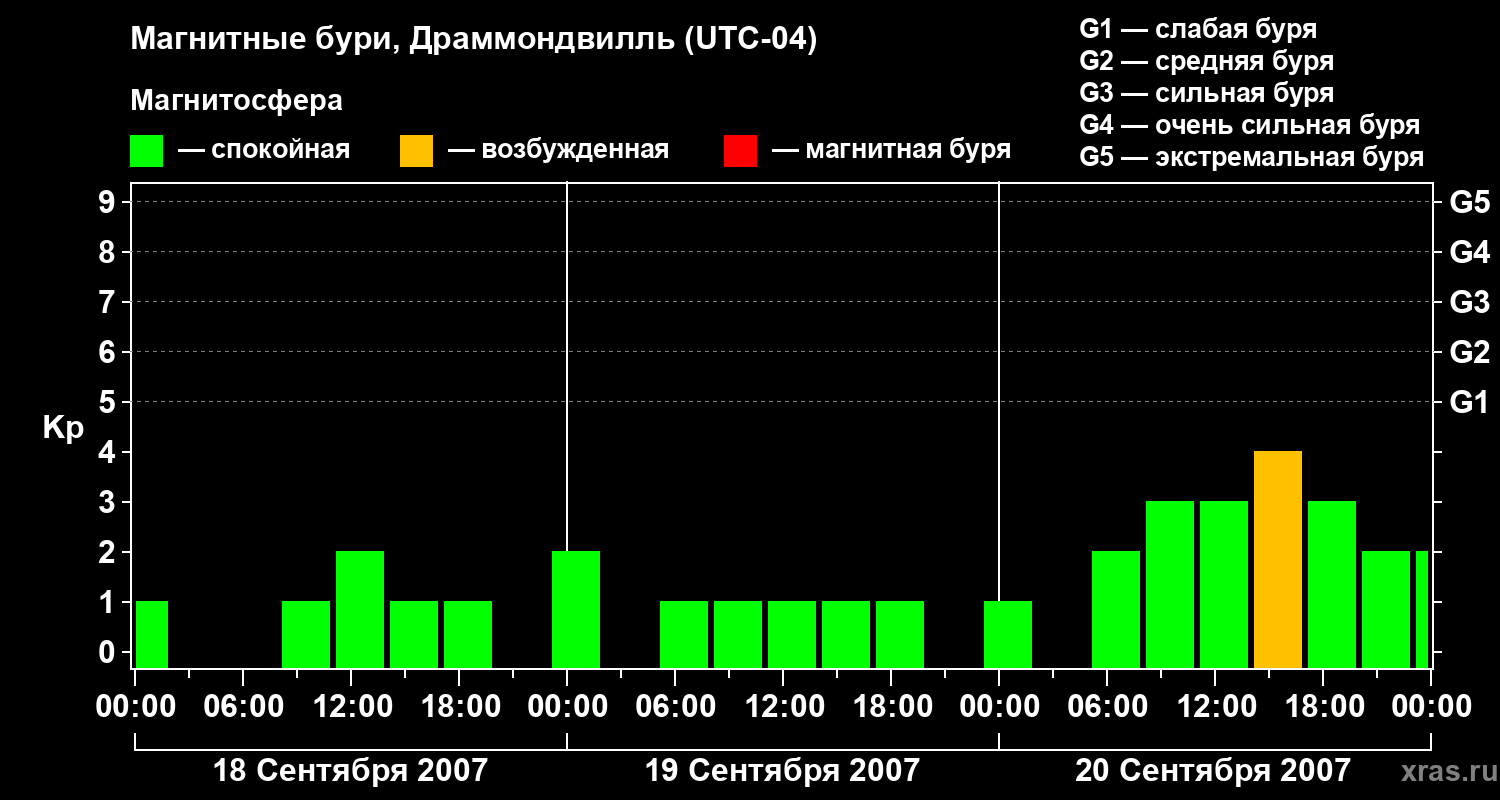 Магнитные бури в Драммондвилле 20 сентября 2007 года