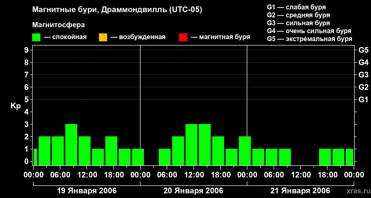 Магнитные бури в Драммондвилле 21 января 2006 года