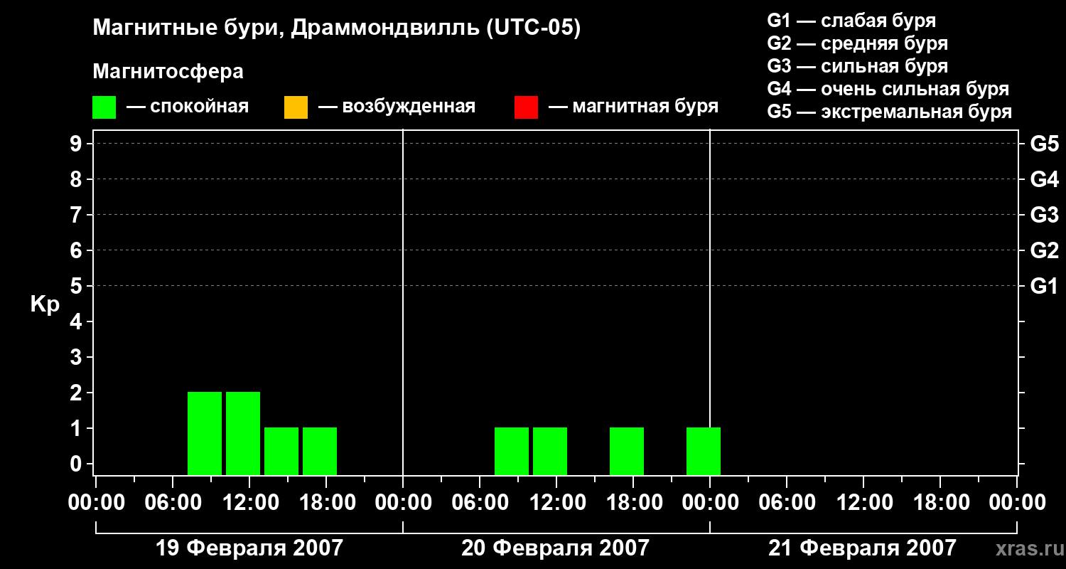 Магнитные бури в Драммондвилле 21 февраля 2007 года